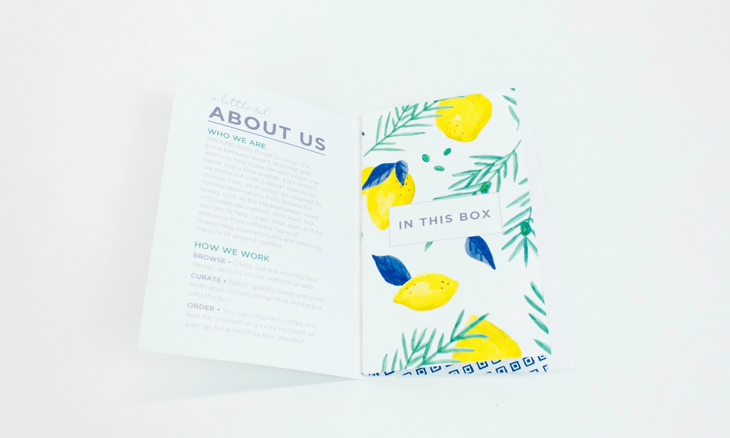 Abound Baby Boxes is a curated box company that delivers unique, designed items for babies, right to the parents' doorstep -- all based on the prompt of a binder clip. In thinking how the binder clip holds paper together gently, I considered the caring bond between mother and child. Furthermore, the binder clip, as opposed to other binding methods, allows for papers to interchanged, which translated to the changing of a baby’s diaper, clothes, etc.