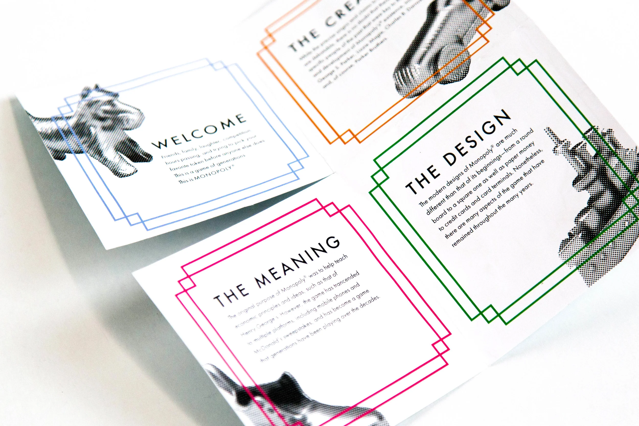 A museum exhibition on the origin and history of the popular board game, Monopoly™. The design is influenced by the game’s pre-existing design and is based off of its historical background. Graphics, a narrative literature, and exhibit interactivity help to bring the game to life, while also putting a modern twist on the classic game.